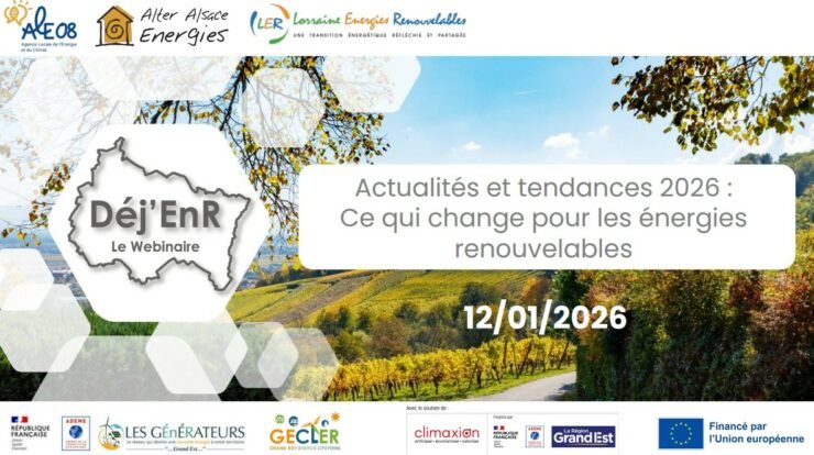 Découvrez le programme 2026 des Dej’EnR, votre webinaire mensuel sur les énergies renouvelables en Grand Est. Il est animé par deux réseaux :