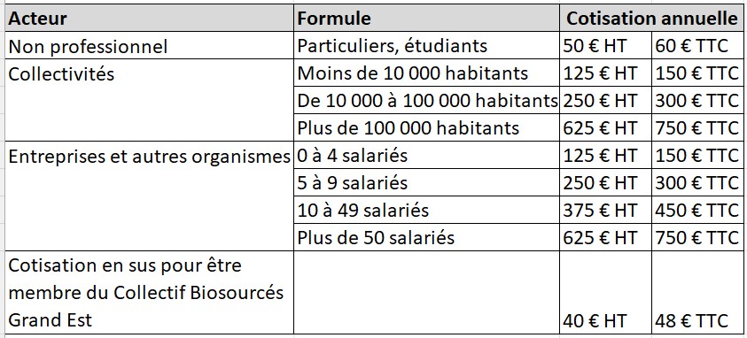 - La possibilité de participer à nos commissions de travail et ainsi proposer et mettre en œuvre vos idées (Commissions Air-Eau-Energie-Matériaux, Promotion & Evènements, Technique-Economie-Social, Formation-Information-Sensibilisation, Urbanisme ; Collectif Biosourcés Grand Est avec une cotisation en sus).